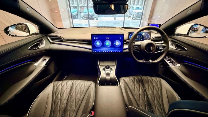 Panoramic glass roof, auto tailgate, dual zone AC, multifunction steering wheel, LED DRL, 15.6" intelligent rotating touchscreen display.