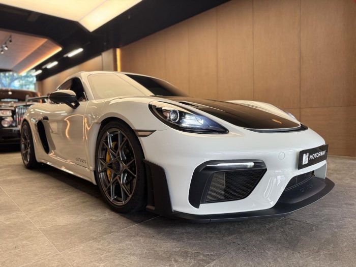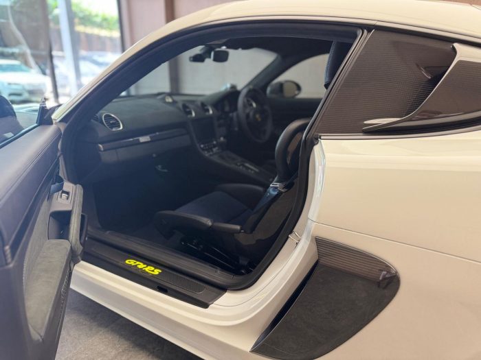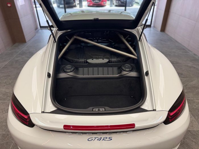 4.0L flat 6 naturally aspirated engine with & 7 speed PDK transmission producing 500bhp & max torque 450nm. 0-100 3.4sec. Mid engine configuration .