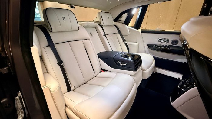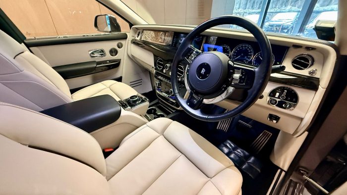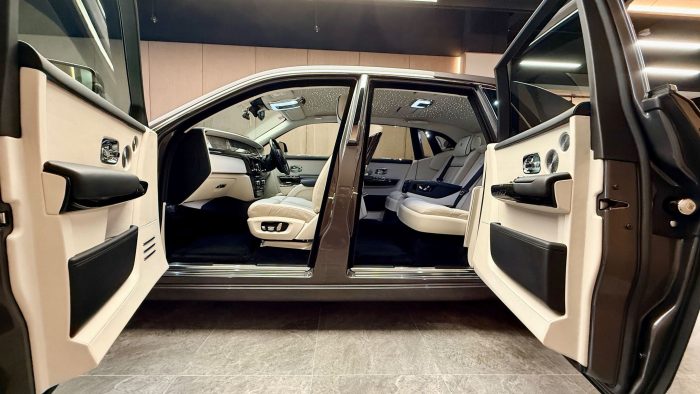 Bespoke personalization via Rolls-Royce's Bespoke program: starlight LED headliner constellations, embroidered headrests. Rear electric footrest.